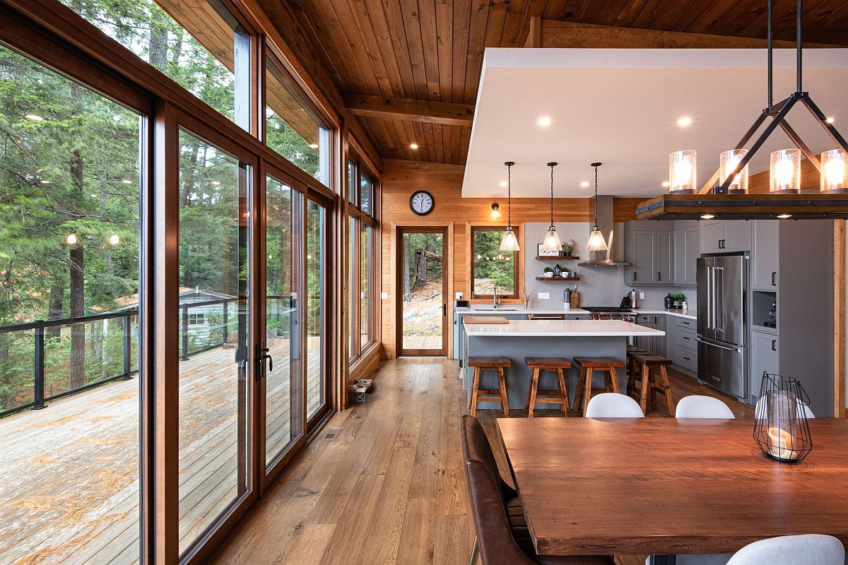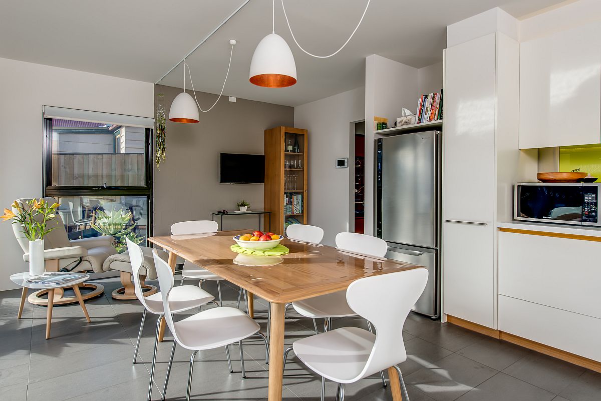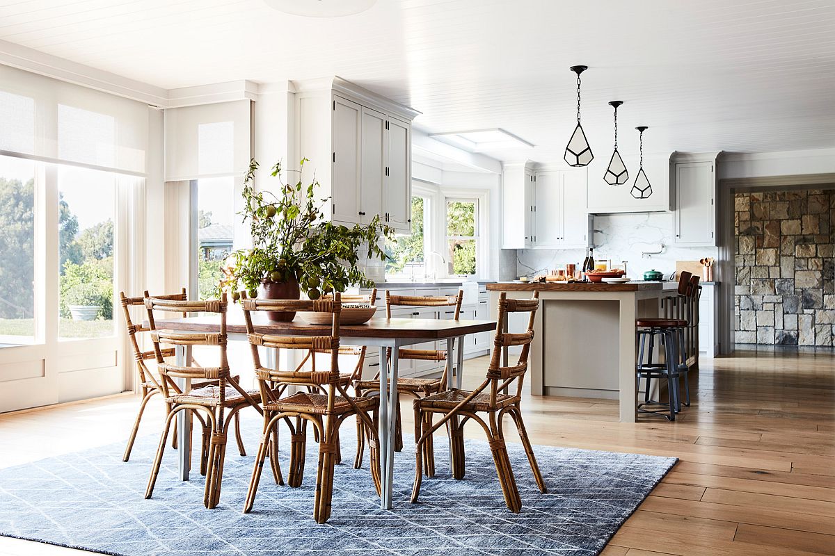Combining the kitchen with the dining area is an idea that is neither revolutionary nor something you have to make major renovations to embrace. You can either call it an eat-in kitchen or a dining area next to the kitchen; semantics should not bother you too much in here. With a color palette and style that complements the kitchen island and breakfast bar next to it, these dining areas act as a transition area between the kitchen and living space. Use a bright area rug to delineate this space and give it individuality.