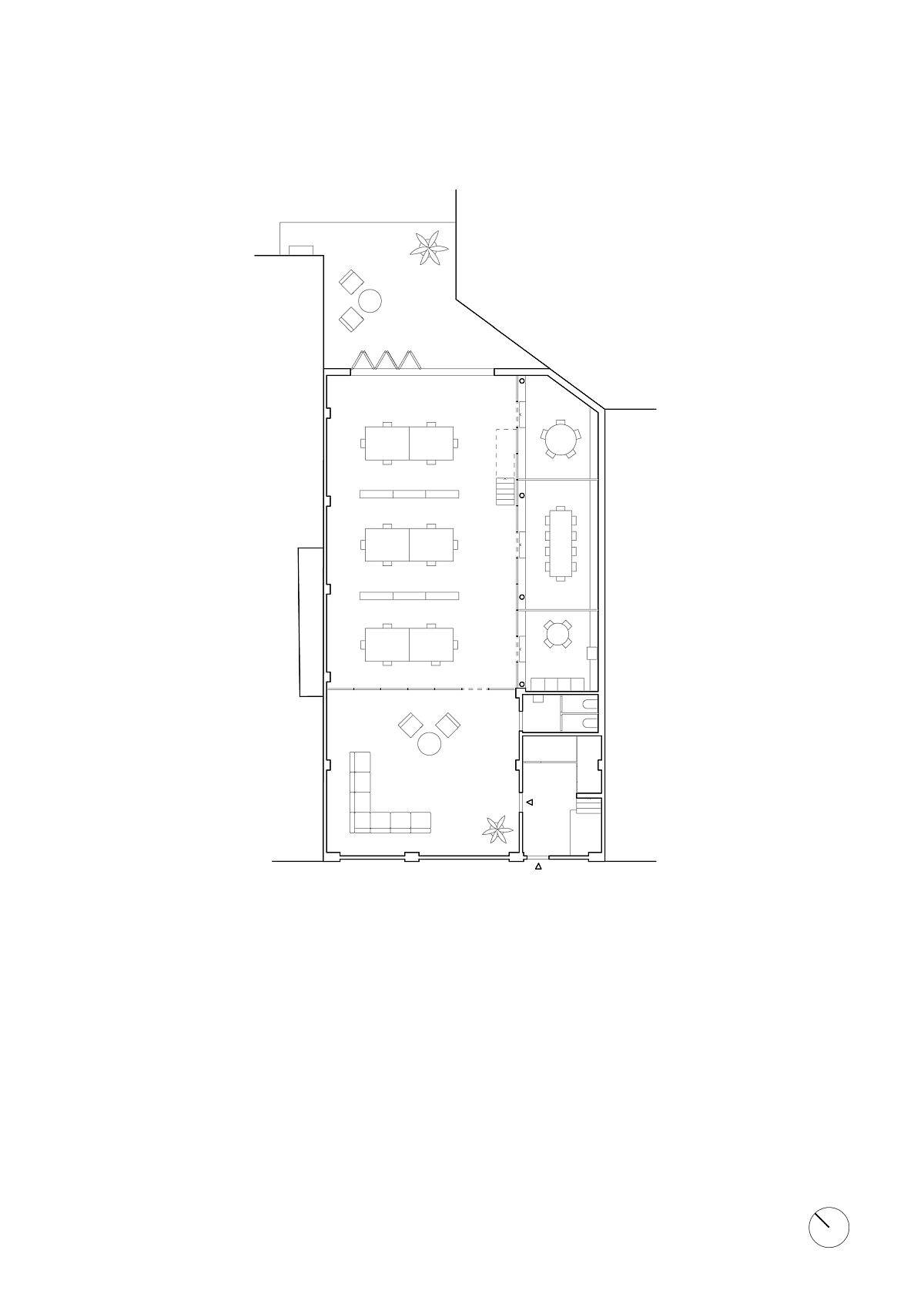 The existing structure consists of peripheral brick walls holding up a wooden roof frame and sheltering an intermediate floor made up of vaulted brick ceilings supported by metal porticoes. Emphasizing this idea of structural embeddings, the servant strip consists of a fully independent post-slab structural system. The plan is divided into two strips: a narrow one, in the extension of the existing staircase, accommodating small rooms – a large one accommodating big rooms.