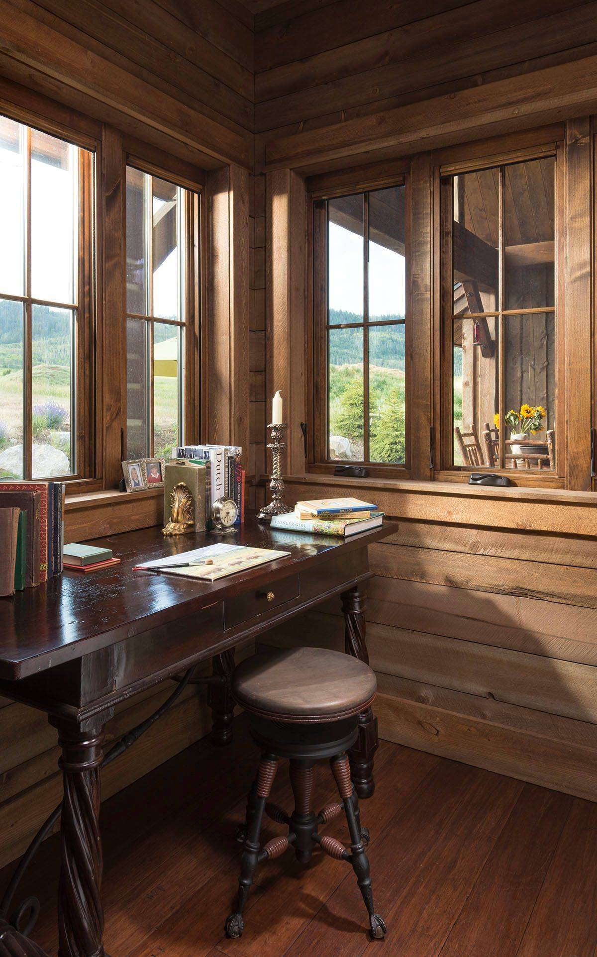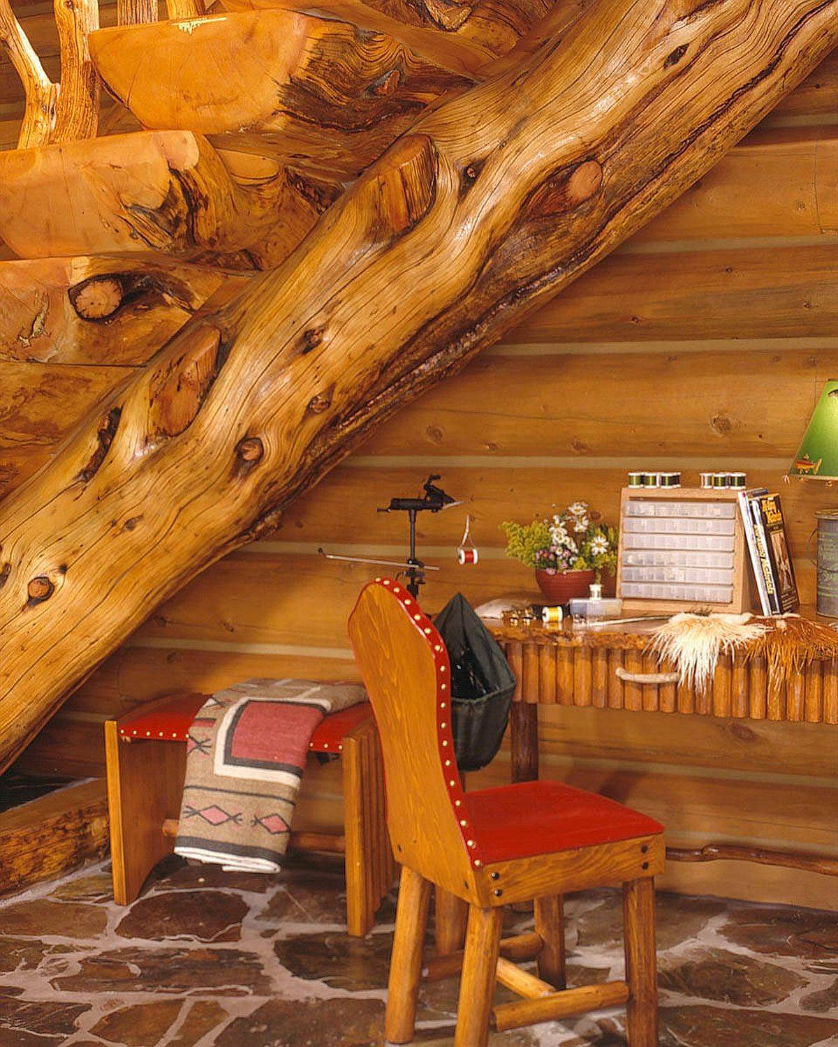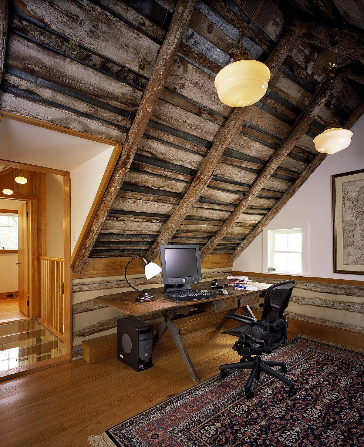 The small workspace can feel cramped if you fill it with too many elements and if left largely undecorated, it looks ungainly and forgotten. The balance in here is between a small space with just a desk and a chair and one where you have barely any space to move around without the fear of knocking something down! In a rustic home office, warm wooden finishes, weathered rustic elements and the neutral backdrop give the room a comfortable and wholesome appeal without having to rely on introducing too many decorative elements.