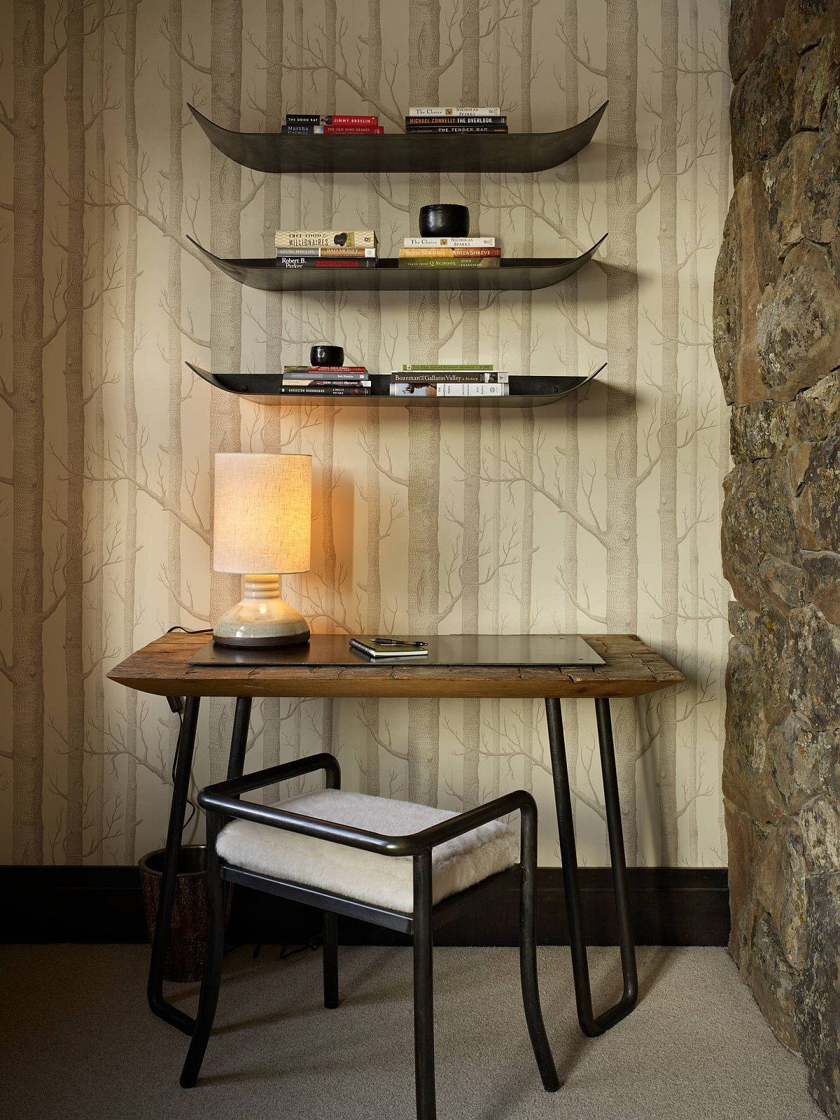 In the home office, a fusion between the mountain cabin-inspired rustic look and the more modern aesthetics is one that depends on your preference for one of the two. If you already have a room with a largely rustic backdrop, then adding a modern desk and chair to the space along with a couple of contemporary cabinets or open, floating shelves should do the trick. On the other hand, in the modern, small home office a large desk in natural wood finish ushers in the rustic touch without going overboard. Modern-rustic home offices are more suited as an idea for small spaces than just classic rustic-styled rooms because of the visual spaciousness they exude.