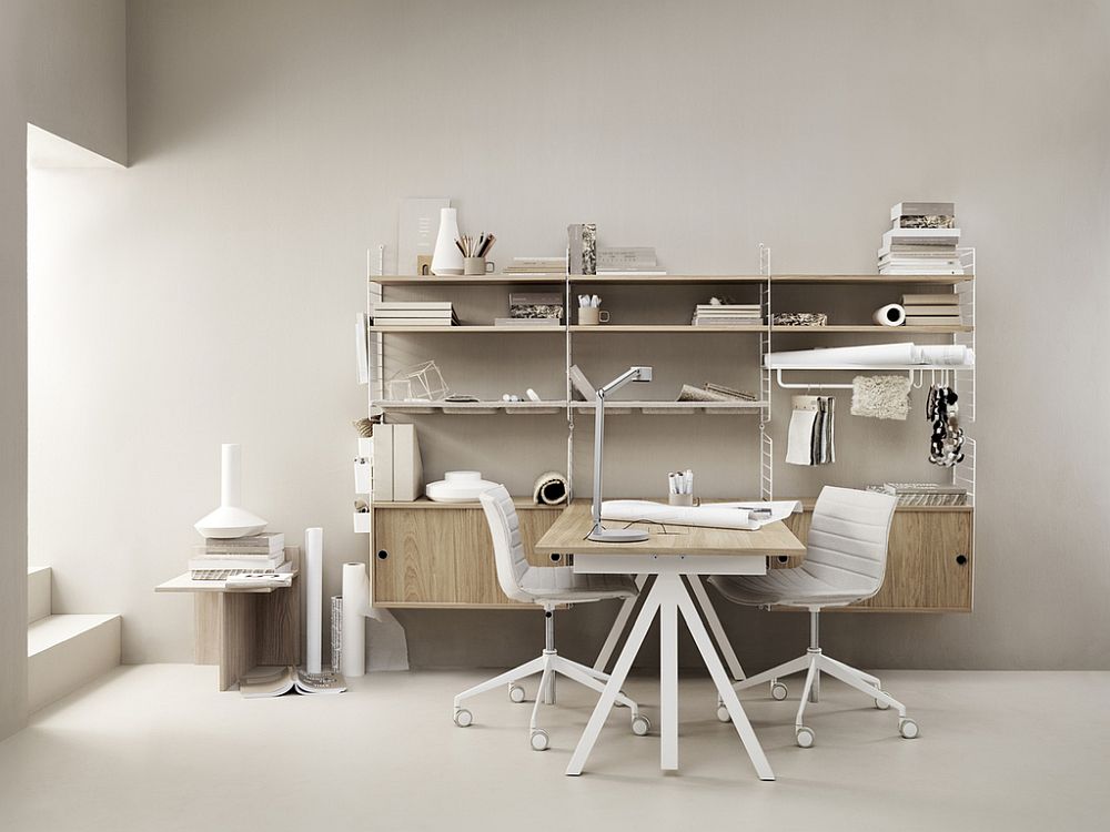 String Furniture is renowned in the world of modular décor for decades now with the iconic and evergreen String System of shelves that make every room far more efficient and aesthetic. Incorporating this system into an office setting along with a fabulous, custom sit-stand desk that is adaptable, the new Workspace designed by Bjorn Dahlström and Anna von Schewen is an absolute showstopper. Design process of the system involved much more than mere aesthetics with long term health of those working 9 hours or more each day at a desk being considered.