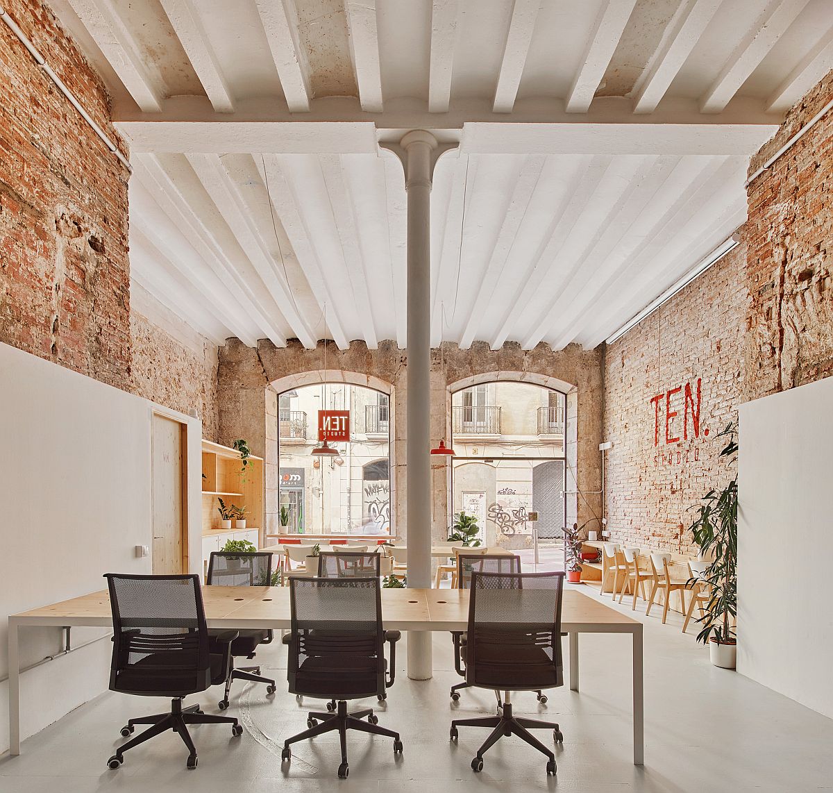 There are times when you need to cover the existing walls of your home with new finishes for a more polished interior. Then there are occasions when you strip out the excess and unnecessary finishes that have been added to a space over the years to discover its beautiful ‘bones’. Revamped and renovated completely to turn an old art shop that was originally built in the 1930’s into a modern office, the TEN Studio designed by NAM Arquitectura in Tarragona, Spain falls in the latter category with its eye-catching modern industrial interior that is blended with smart organization.