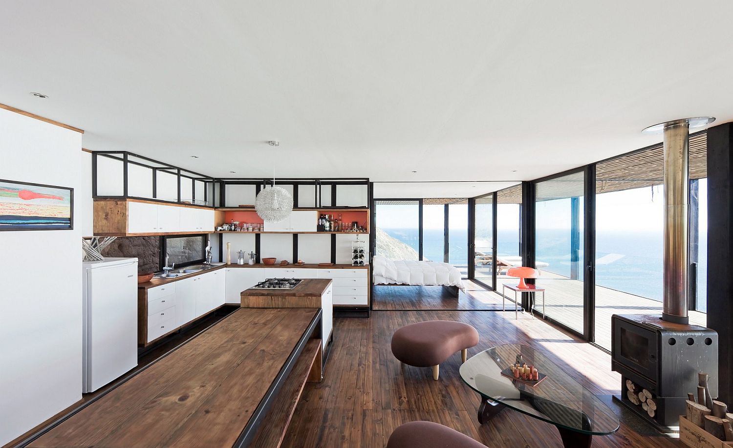 A weekend home that takes us away from our usual life and rush is one that we all long for. But an even more impressive escape is a weekend retreat that sits on the edges of a stunning cliff and overlooks the coastline, ocean and the scenery beyond. This is just what you get as one steps into the brilliant world of Till House designed by WMR Arquitectos in Chile. Perched seemingly precariously on the cliff’s edge, it is the rugged coastline that brings unmatched beauty to this relaxing contemporary home. Its structure is simple and minimal with a metallic frame and wooden interiors that feel modern and edgy at the same time.